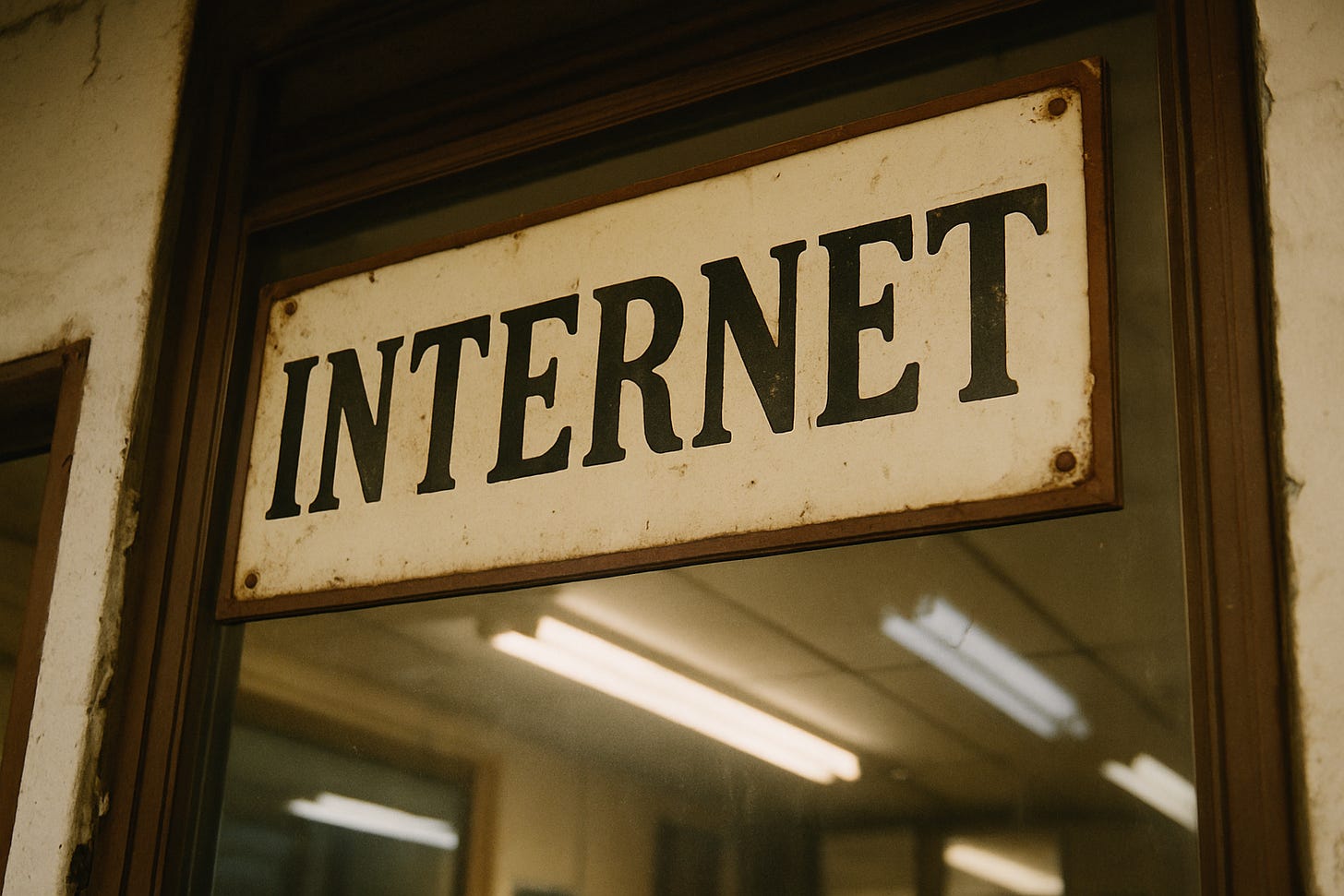 I took this photo earlier this week. It’s ironic, but also sincere—not the photo itself, but what’s in it. If you know what it is and where it is, then you know what it is and where it is. That’s why I won’t say more. I don’t want to ruin the mystery. Think of it as a tribute, in the quietly esoteric spirit of a 1997 webmaster—just enough secrecy to make it sacred, but not enough to be smug. It’s a room, in a CUNY building, that once did exactly what the sign says. The same sign, or one very much like it. Now it’s museum-grade, glass-encased internet archaeology. A shrine to webmasters and other ghosts.